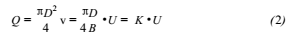 式(1)說明,導體在磁場內作切割磁力線運動,導體兩端產生的感應電動勢的大小與磁感應強度B成正比,與導體的長度D成正比,與導體運動的速度v成正比。由式(2)可知液體的體積流量與感應電動勢成正比,這就是dn500自來水流量計的設計原理。