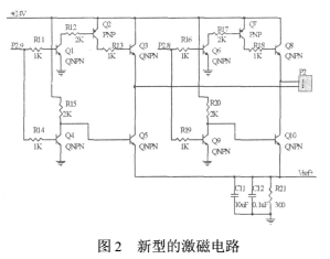 為此,設計了一個新型的激磁電路,并將激勵電流反饋到A/D轉換器,以消除激勵電流不穩定對A/D轉換結果的影響,如圖2。