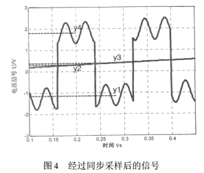 對于基線零點漂移,“正負差值法”是比較有效便捷的選擇,它不需要直接消除信號中的基線零點漂移,而是通過算法上去掉基線零點漂移對測量結果的影響。該系統中,激磁信號的頻率為6.25Hz,由于所測量的液體流速不會有明顯的突變,所以在信號的一個周期0.16s內,可以采用一個波峰減去波谷的均值來表示此時的流量信號,也即如圖3中|y4-y1|其中y4是從nT+T/4到nT+T/2采樣結果的算術平均值,y1是從到(n+1)T進行采樣結果的算術平均值。但是由于斜率零點漂移的存在,會出現如圖3中|y3-y2|的誤差,所以需要利用式(15)的結果對該誤差進行修正,修正后的結果也就是此時管道中液體感應出的電動勢為:
