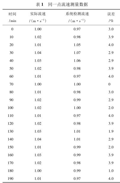 由表 2 測量數(shù)據(jù)可知,系統(tǒng)在測量低流速液體時(shí)(流速小于 1 m/s)誤差較大,達(dá)到 5%,當(dāng)待測液體的流速增大時(shí)(大于 1.4 m/s),誤差逐漸減小,基本維持在 3%以內(nèi)。由此可見系統(tǒng)具有較高的檢測精度,尤其是當(dāng)管道中的液體流速較高時(shí),系統(tǒng)的檢測誤差不超過 3%,達(dá)到了設(shè)計(jì)預(yù)期。