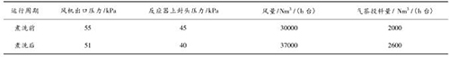 液體渦街流量計煮洗吹掃后,裝置運行期間無燃爆事故,且裝置運行的風量明顯提高,系統阻力明顯降低,投料量增加。現將煮洗前后的運行數據對比如下:
