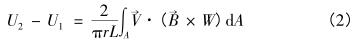 式中,S均勻為測量區域任意一點磁感應強度與珔B之比在95%至105%的面積和,S測量區域為測量區域的總面積。由Maxwell方程及在一定的假設條件下,可得井水流量計的感應電勢的表達方程,如式(2)所示: